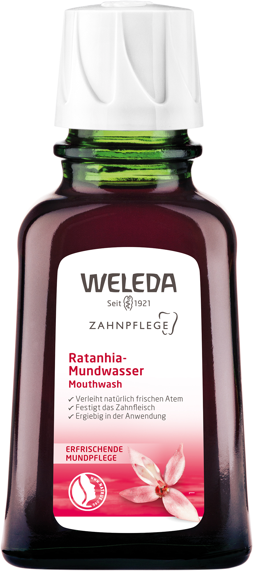 Das Ratanhia Mundwasser regt durch äthe rische Öle und mineralische Substanzen die natürlichen Funktionen der Mundschleimhaut an, hält die Mundflora im Gleichgewicht und sorgt für frischen Atem. Auszüge aus der peruanischen Ratanhiapflanze und Myrrhe kräftigen das Zahnfleisch und die Mundschleimhaut und helfen so, Irritationen vorzubeugen. Das Ratanhia Mundwasser ist ein Konzentrat und daher sehr ergiebig.