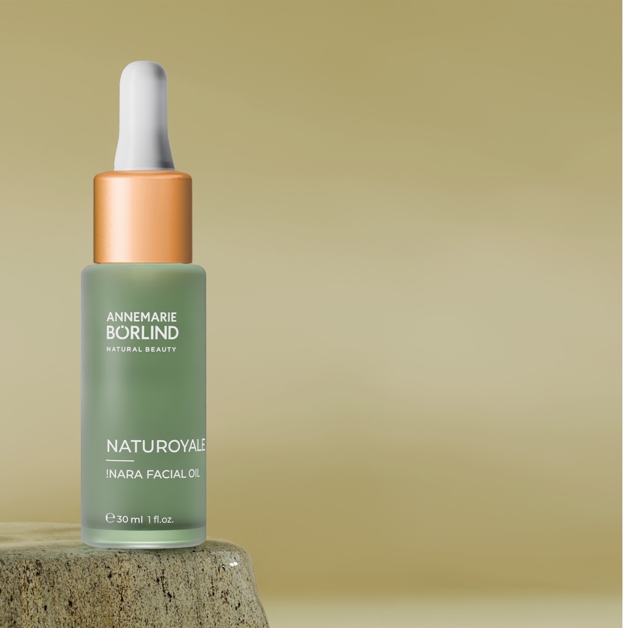 !NARA GESICHTSÖL: Morgens und abends auf die gereinigte und gestärkte Gesichtshaut auftragen, sanft einmassieren. Bei Bedarf mit der NATUROYALE Tages- und Nachtpflege kombinieren.
