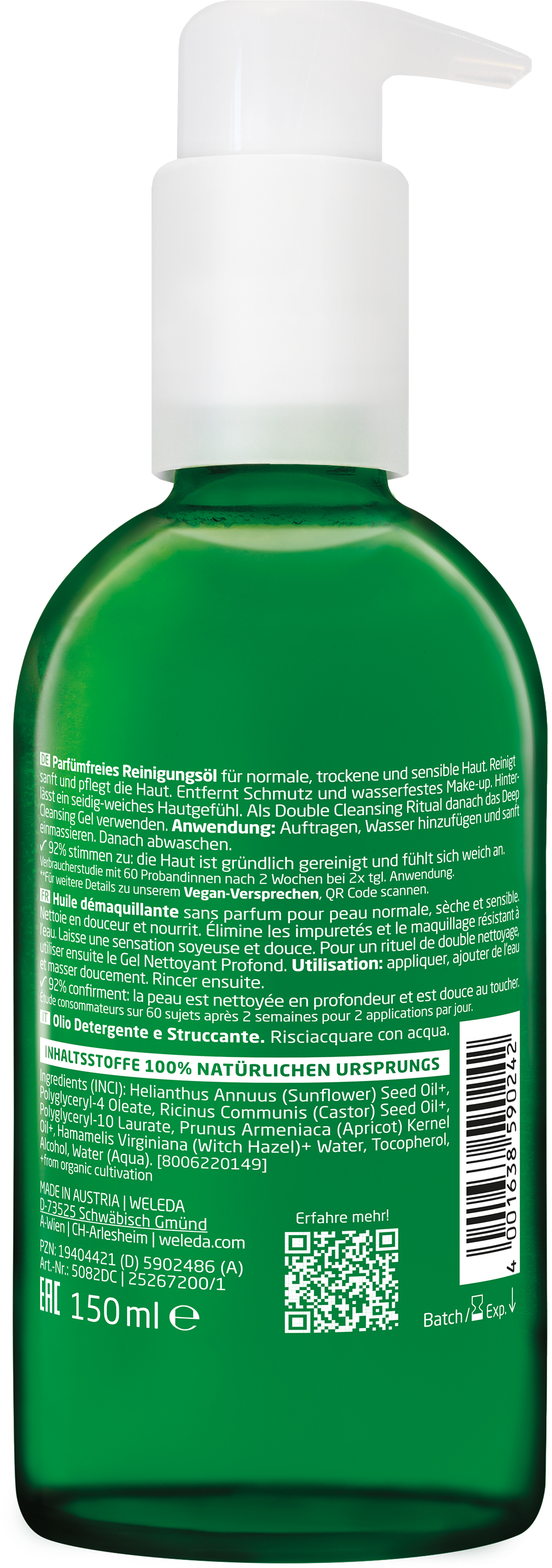 Reinige deine Haut, inklusive der Augenpartie sanft und pflege sie dabei. Unser Make-up Removal Cleansing Oil entfernt mühelos auch hartnäckiges Make-up und bewahrt zugleich die natürliche Feuchtigkeit deiner Haut. Die pflanzliche Formel mit Aprikosenkernöl und Hamameliswasser ist parfümfrei und ideal für trockene oder empfindliche Haut. Das Cleansing Oil ist einfach anzuwenden und verleiht ein weiches, seidiges Hautgefühl ohne fettiges Finish.