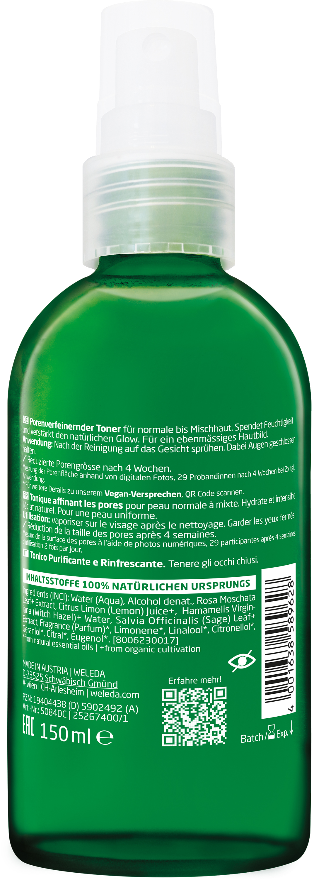 Reduzierte Porengröße nach 4 Wochen! Unser porenverfeinernder Hydra Toner erfrischt, reinigt und belebt normale und Mischhaut. Dank Bio-Salbeiextrakt, und den adstringierenden Eigenschaften des Hamameliswassers verfeinert er die Poren und beseitigt letzte Reste von Talg, Schmutz und Make-up nach der Reinigung. Das Ergebnis ist eine weiche, geschmeidige Haut und ein verfeinertes Hautbild.