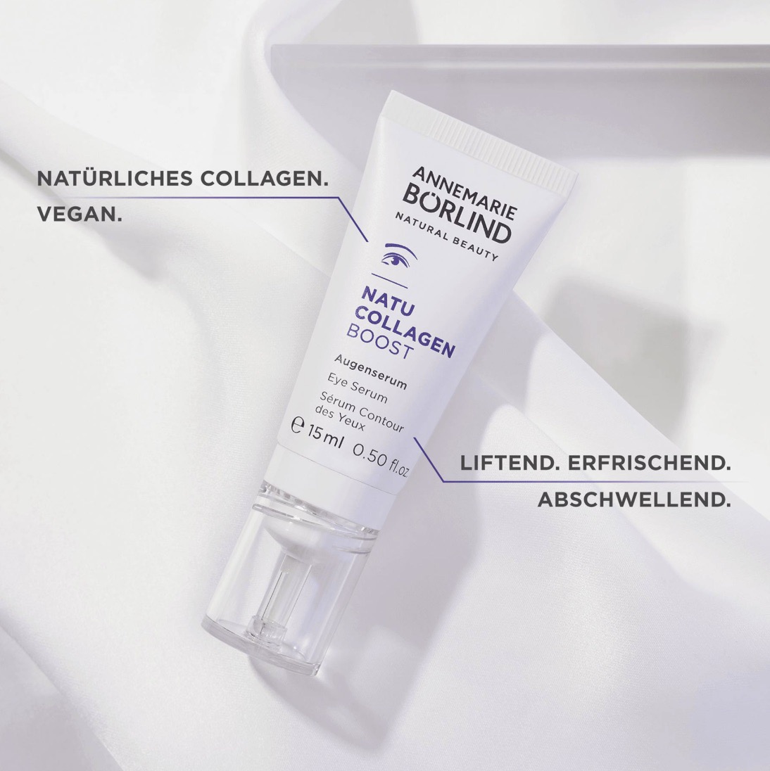 Die reichhaltige Pflege mit natürlich gewonnenem, veganem Kollagen spendet und speichert Feuchtigkeit. Ein Booster aus weißer Lupine regt die hauteigene Kollagenproduktion an und glättet feine Linien. Für einen jugendlich, strahlenden und wacheren Blick.