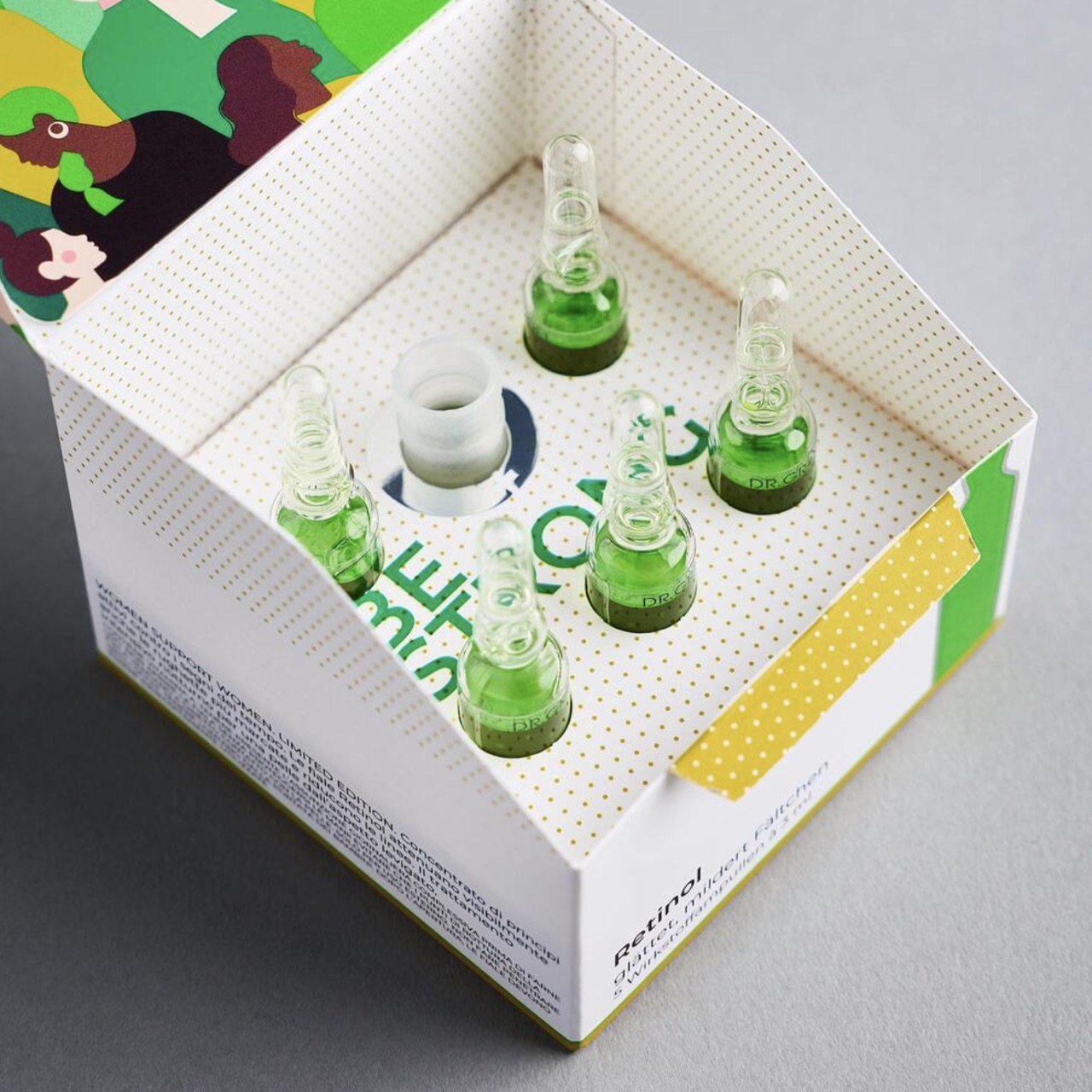Women Support Women. Limited Edition. Mit den DR. GRANDEL Retinol Ampullen werden selbst ausgeprägte Fältchen sichtbar gemildert. Die nächtliche Hautpflege reduziert Linien und Fältchen im Schlaf. Spitzname der grünen Retinol Ampullen: der Faltenkiller.