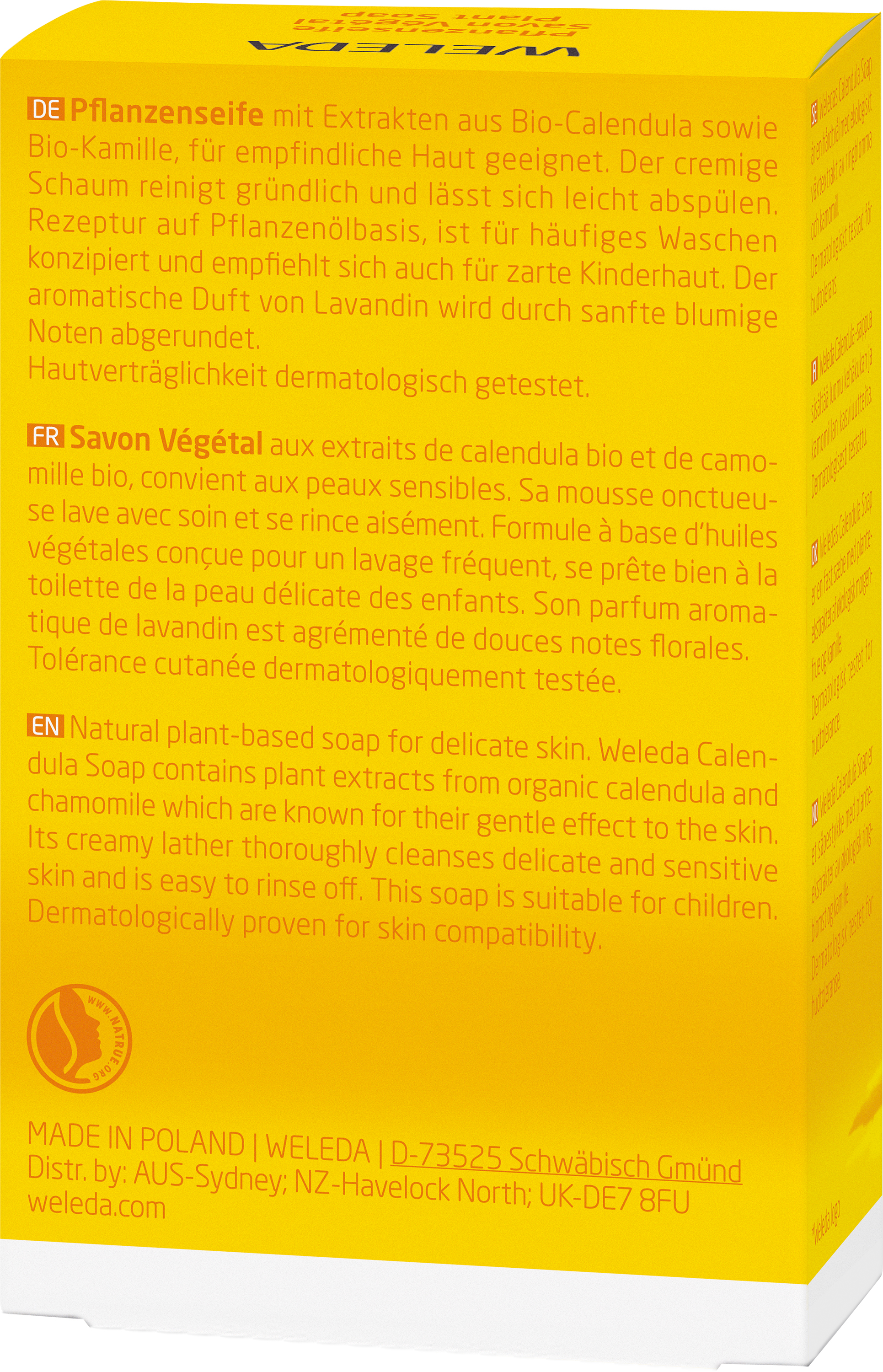 Die Weleda Calendula-Pflanzenseife wird aus reinen pflanzlichen Ölen aus kontrolliert biologischem Anbau und mit wertvollen Pflanzenauszügen hergestellt und ist für sensible Haut geeignet. Die Pflanzenauszüge aus Calendula, Kamille und dem Iriswurzelstock wirken nicht nur mild reinigend, sondern auch sanft pflegend.